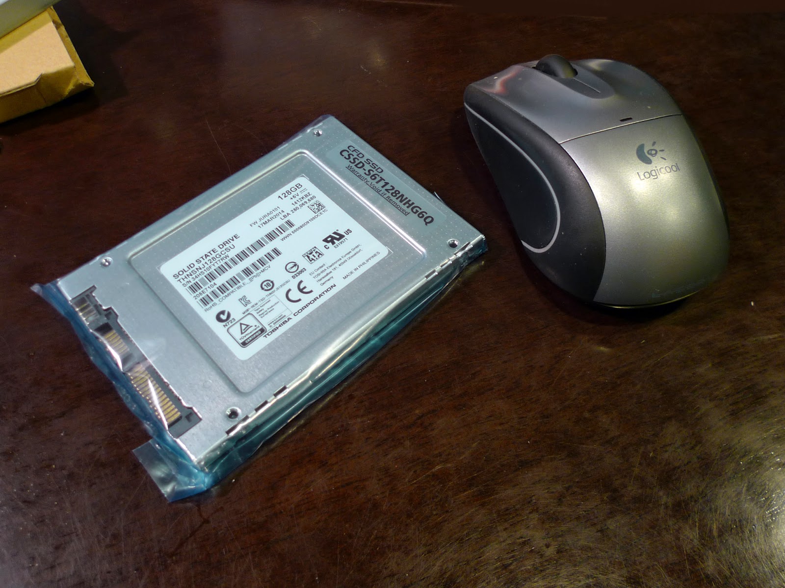 今回の改造の目玉の一つがドライブの交換です。内蔵HDDから異音がするので換え時かとは思っていました。今回SSDに交換します。128GBもあるので容量も充分です。