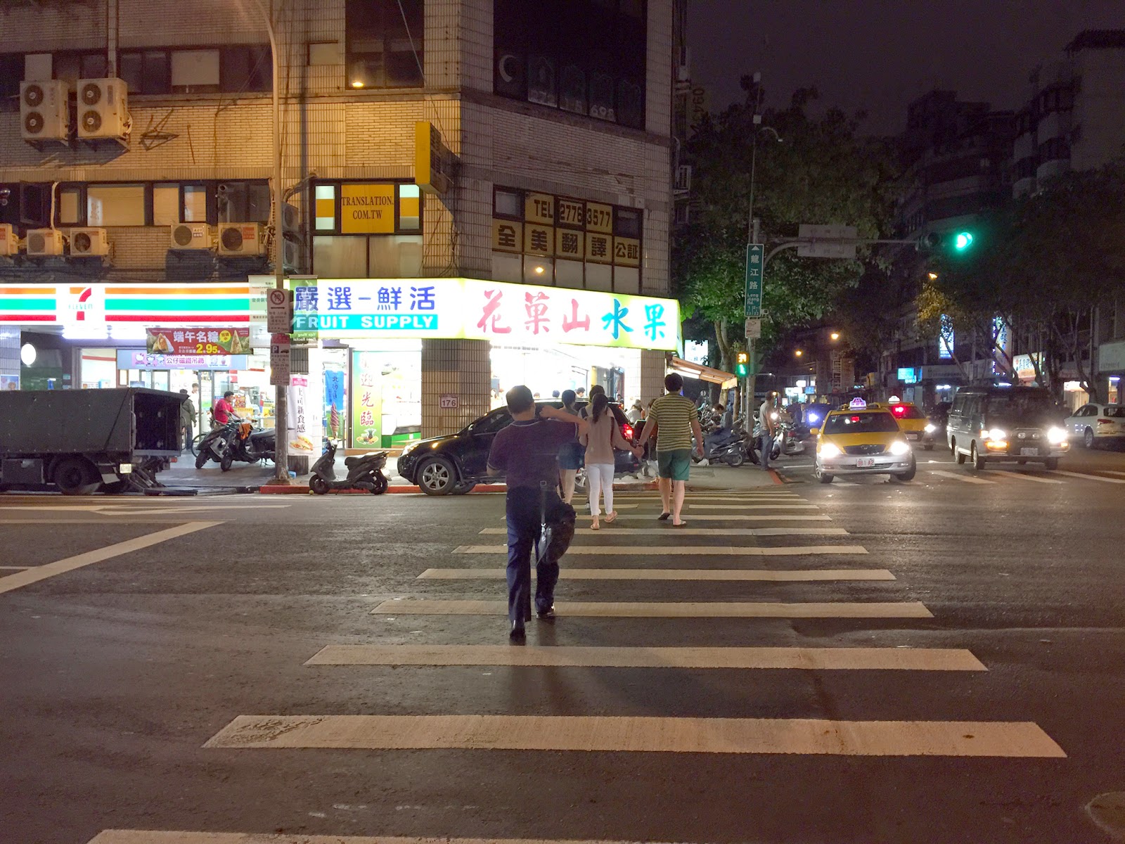 まぶしく光る看板とぞろぞろ人が集まっています。雨も止んで蒸し暑いです。